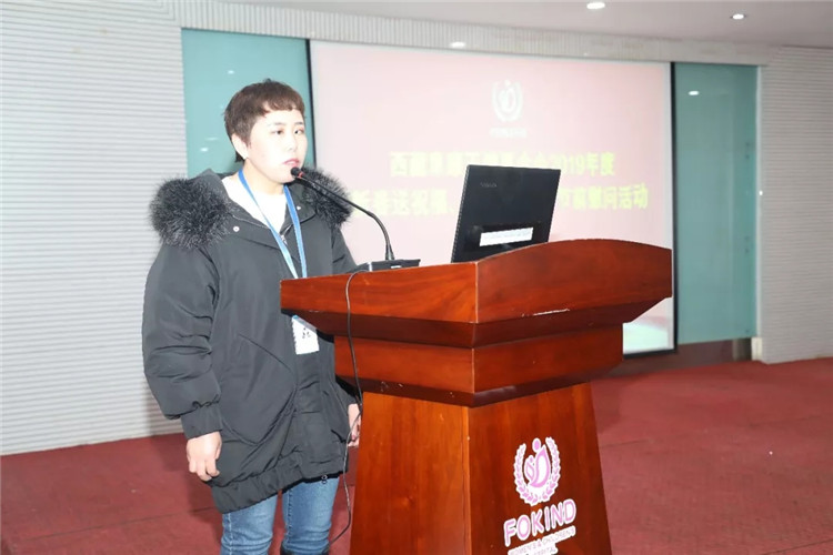 西藏阜康天使基金會秘書長吉拉帶來了阜康天使基金會創(chuàng)始人王斌、劉瀟瀟對困難員工的祝福和慰問,勉勵大家努力工作,與阜康共同進(jìn)步,在走向幸福的路上一個都不能少,并祝大家過一個幸福快樂年!由于此次受助人員都是藏族員工,吉拉秘書長用藏語鼓勵大家積極生活、努力工作,要用一顆感恩的心回報(bào)社會。阜康天使基金會將在區(qū)黨委、政府的領(lǐng)導(dǎo)下,緊跟時代步伐,發(fā)展創(chuàng)新,爭取在助醫(yī)、助學(xué)、助困上幫助到更多的人。