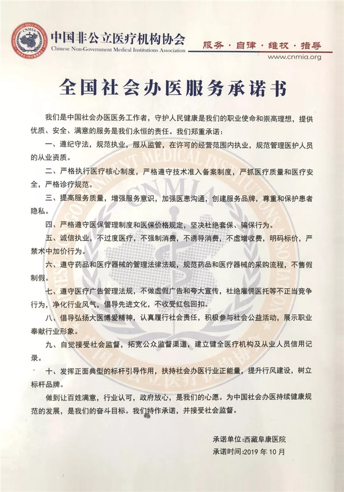- · 熱烈慶祝西藏阜康醫(yī)院當(dāng)選為中國非公立醫(yī)療機(jī)構(gòu)協(xié)會健康體檢分會首屆常委單位