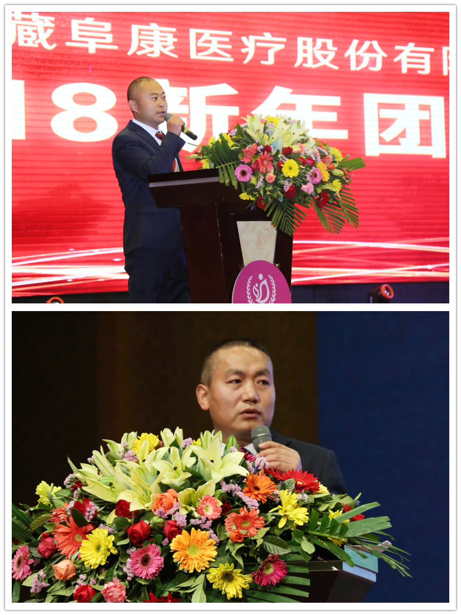 隨后,董事長王斌走上講臺飽含激情地說“我之存在,因為有你”,并向所有來賓鞠躬致謝。董事長王斌講述了阜康發展史、阜康人的奮斗史,從2005年的47名員工到現在的1024名員工,并再次感謝一路伴隨阜康成長的所有人,還指出2018年是阜康發展史上很關鍵的一年,要早計劃、早安排、早部署,要以十九大精神為指導,堅持科學發展觀,早日把阜康建設成為現代化醫院。
